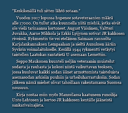 Jaakko Voipio: Liian nuori sotaan, muistelmat sotavuosilta 1939-1944, WSOY 1993
