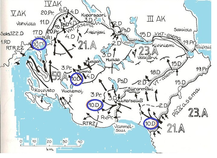 kesällä 1944: Valkeasaaresta Viipurinlahdelle, kartta